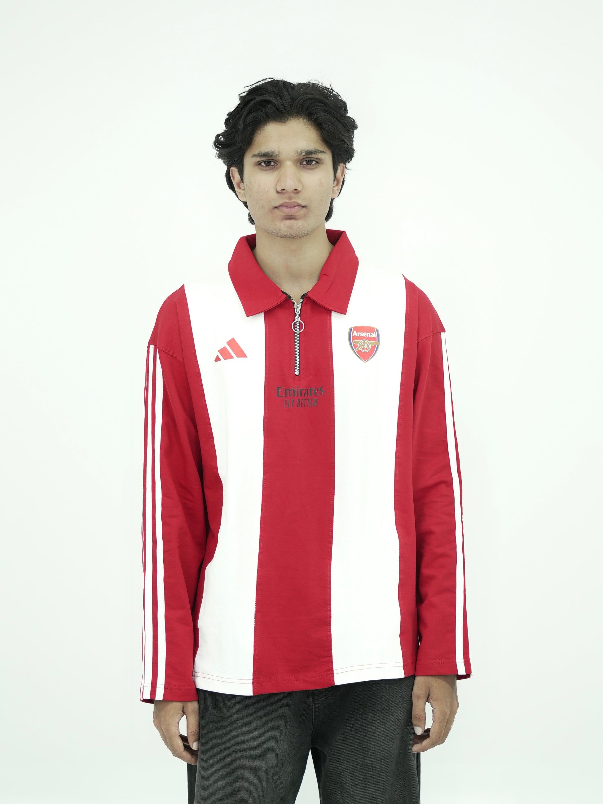 Inspired by classic football club jerseys, this long-sleeve club T-shirt features bold vertical panel detailing with a zip-up collar for a sharp streetwear edge. Designed in a relaxed fit, it blends sporty heritage with modern casual style—ideal for everyday wear or statement looks.